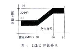 雙絞線中的每對(duì)導(dǎo)線以雙螺旋形結(jié)構(gòu)相互纏繞。如圖2所示,共模電流Icom在兩根導(dǎo)線上以相同方向流動(dòng),并經(jīng)過寄生電容Cp到地返回。在這種情況下,電流產(chǎn)生大小相等極性相同的磁場 ,它們的輸出不能相互抵消,引起射頻干擾,嚴(yán)重時(shí)有可能會(huì)造成電路板癱瘓。因此,設(shè)計(jì)者必須采取措施予以防范:除了保證布線合理外,選擇有效的濾波元件也是重要的一方面。磁模塊的共模扼流器部分可以有效地減少共模信號(hào)引起的射頻干擾。如圖3所示:共模電流以相同的方向流過共模扼流圈繞組的每一邊,建立大小相等相位相同的相加磁場使共模扼流圈對(duì)共模信號(hào)呈現(xiàn)高阻抗,通過共模扼流圈的共模電流大大地減弱。磁模塊主要的參數(shù)有:漏電感、線間電容和回?fù)p。一般地,漏電感和線間電容越小性能越好,而回?fù)p應(yīng)當(dāng)符合ANSIX3.263 TP-PMD規(guī)定,如圖4所示。