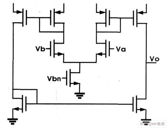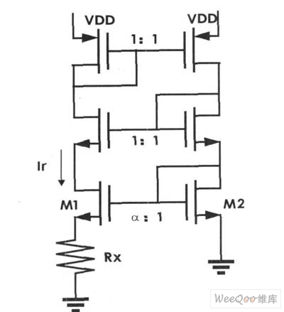 電流比較電路由電壓比較器A1,若干電阻和MOS管構(gòu)成。參考圖2可知,電流比較電路的左半部分將電流轉(zhuǎn)化為電壓,而A1比較兩者電壓差給出判斷電壓Vc。