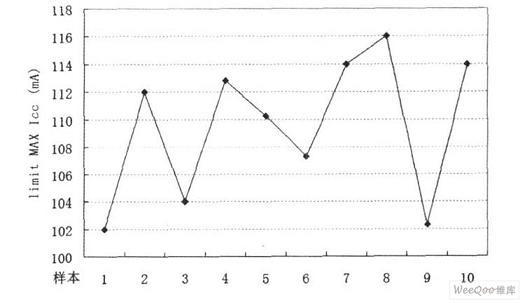 將以上設(shè)計(jì)的限流電路嵌入某穩(wěn)壓芯片(內(nèi)含電荷泵電路)中,實(shí)現(xiàn)流片量產(chǎn)(CMOS工藝)。當(dāng)VDD=3V時(shí),通過(guò)測(cè)量量產(chǎn)芯片得到輸出電流極限數(shù)據(jù)。統(tǒng)計(jì)如圖5所示,可知當(dāng)輸出電流處于100~120mA范圍內(nèi)時(shí),限流電路開(kāi)始工作,關(guān)閉系統(tǒng)即保護(hù)LDO安全。由此可見(jiàn),本設(shè)計(jì)電路結(jié)構(gòu)簡(jiǎn)單,功能可靠,可廣泛應(yīng)用于電源芯片中。