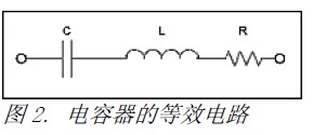 使用星形拓撲VCC引線時,還有必要采取適當的電源去耦,而去耦電容存在一定的寄生電感。事實上,電容等效為一個串聯的RLC電路,如圖2所示,電容在低頻段起主導作用,但在自激振蕩頻率(SRF)