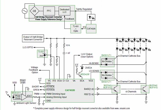 CAT4026 是應用于大尺寸側光式LED 背光液晶電視的多通道線性LED 驅動器的高性價比方案,可以單顆IC 支持6 通道,且易于分級為多達12 個或18個通道(相應采用2 個或3 個控制器),目標能效高于90%,典型能效達94%。此外,該驅動器還提供正向電壓監測功能,可以限制總體功耗;還能為LED 開路及過多LED 短路等不同LED 串故障提供保護。