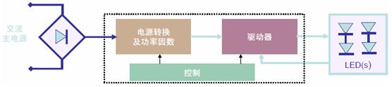 在“功率因數校正(PFC)+恒壓(CV)+恒流(CC)”的三段式架構下,交流-直流(AC-DC)轉換與LED驅動電路并未集成在一起,而是采用分布式配置,既簡化安全考慮又增強系統靈活性,也稱作分布式方案,典型應用包括線性燈及線槽燈等。