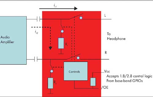 圖1:具有低THD和負擺幅功能的音頻開關可以消除音頻沖擊噪聲。
