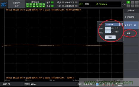 第四步,找到了想要觀察的波形幀之后,可以通過“FORM按鍵調(diào)整界面的窗口時間,對波形進行任意放大或縮小”并可以調(diào)出光標(biāo)測量任意兩點的橫縱軸數(shù)據(jù)。看到這里我相信大部分人已經(jīng)可以找到自己想要看的波形了。但是想要把波形存儲記錄下來怎么辦,而且想要長時間記錄可以實現(xiàn)嗎?不要急,PA功率分析儀還提供波形保存記錄功能。