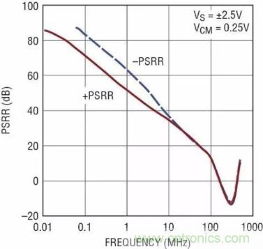 圖11:LTC6268隨頻率變化的電源抑制