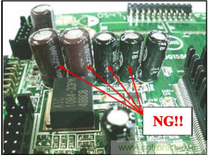 3、電容的配置要遠(yuǎn)離發(fā)熱零件