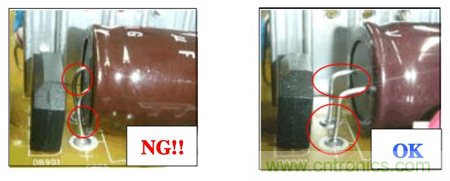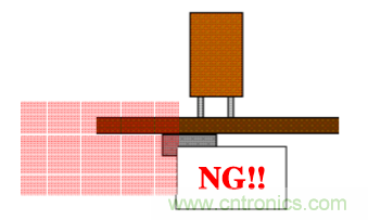 進(jìn)行臥裝時請勿在電解電容端子根部施加力量. 如下圖: