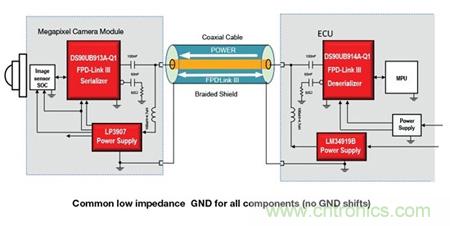高速串行數字鏈路連接視頻組件,可在攝像頭的數字成像器與數字 LCD 顯示屏之間實現無縫連接。汽車視頻鏈路中部署的最常用及最可靠高速數字接口技術基于 ANSI/TIA/EIA-644-A 低電壓差分信號 (LVDS) 標準。LVDS 可提供一個穩(wěn)健的數據傳輸標準,支持遠距離、低功耗、高噪聲抑制性以及低 EMI。LVDS 采用差分方式(而非接地所參考的單端信號)實現所需的鏈路屬性。