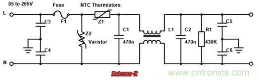 下圖1是典型的AC-DC電源電路前端,圖中Z1為NTC熱敏電阻。該電阻在電源通電時能起到瞬間限流保護的作用。