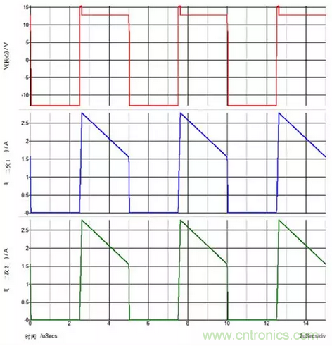 當兩個重載輸出時,電流在整個1-D周期持續流動,輸出電壓平衡良好,如圖2所示。然而,當一個重載輸出和另一個輕載輸出時,輕載輸出上的輸出電容傾向于從該基座電壓發生峰值充電;因為電流迅速回升到零,其輸出二極管將停止導通,。請參見圖3中的波形。這些寄生電感的峰值充電交叉調節影響通常比整流器正向壓降單獨引起的要差得多。