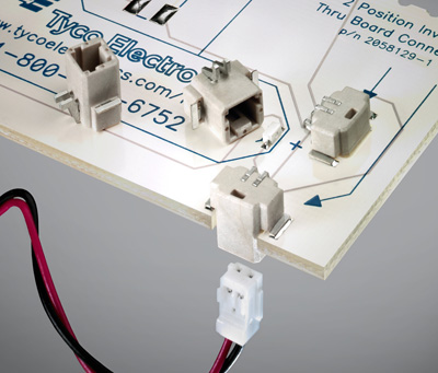 泰科電子此次推出的全新SMT通板連接器具備2位至6位并使用表面貼裝技術(shù),運(yùn)用時穿過電路板使接口轉(zhuǎn)至PCB板的背面,該連接器的反向設(shè)計使得在建筑、住宅及某些商業(yè)應(yīng)用上的固態(tài)LED 照明的安裝操作更為簡便。該連接器與標(biāo)準(zhǔn)型Mini CT連接器完全匹配。Mini CT連接器適合24 AWG電線,額定電流為3安培。