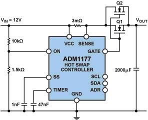 盡管切斷或開啟的電流會比較大,但大電流設計的一些微妙之處卻常常未得到充分的考慮。“細節決定成敗”,本文將重點分析熱插拔控制電路中各部件的功能及重要性,并深入分析在設計過程中使用ADI公司ADM11773熱插拔控制器時的設計考慮和器件選型標準。