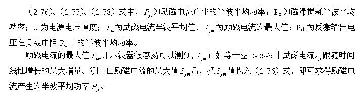 因此,(2-81)、(2-82)、(2-83)、(2-84)式最好只用于對正激式輸出的單激式開關(guān)電源變壓器進行磁滯損耗和渦流損耗功率測試,因為其初級線圈的電感相對比較大,勵磁電流比較??;如果需要對反激式輸出的單激式開關(guān)電源變壓器進行測試,最好只用于對小功率開關(guān)電源進行對比測試。