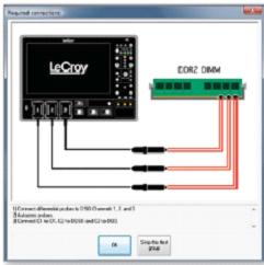 QPHY-DDR2的操作非常簡單,如右圖所示,它使用友好的圖形化界面引導(dǎo)用戶從探頭與被測(cè)系統(tǒng)連接開始一步步完成DDR2的所有測(cè)試。目前為止,力科DDR軟件包是能支持的測(cè)試項(xiàng)目最多的。