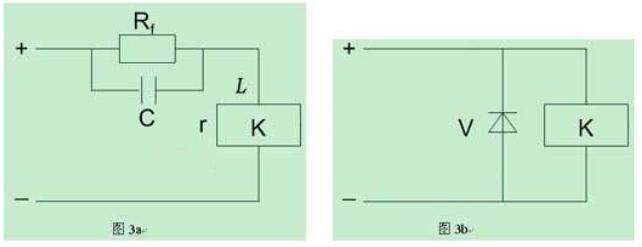而在繼電器線圈兩端反向并聯一只二極管,即可達到延時吸合之目的,見圖3b。它的原理是在繼電器線圈斷電后等于給鐵芯增加了一個短路線圈,使釋放時間延長了。