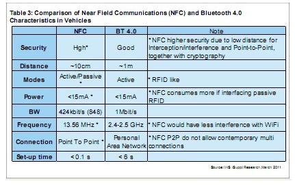 IHS公司預(yù)計,NFC技術(shù)在汽車領(lǐng)域?qū)⑹且豁椦a(bǔ)充性技術(shù),并將與藍(lán)牙和Wi-Fi等目前比較成熟和普及的技術(shù)共存。因此,藍(lán)牙和NFC將互相補(bǔ)充。