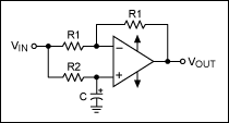 圖7.在級聯(lián)的一階有源全通電路中,這是最常用的一種電路。