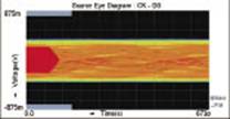 另外我們可以看到信號衰減隨HDMI傳輸線的長短也會有相當(dāng)大的變化。這個(長短線之間的)變化隨輸入信號的頻率升高而加大。從圖2可以估出在150MHz(1080p)時,5m和25m傳輸線之間信號衰減的差別約為20dB。下面我們以HDMI眼圖來更直觀的說明這個問題。圖3是一個4K的信號經(jīng)過2米HDMI銅線后的眼圖。盡管長度只有2米,但它的眼圖已經(jīng)減小的非常厲害了。