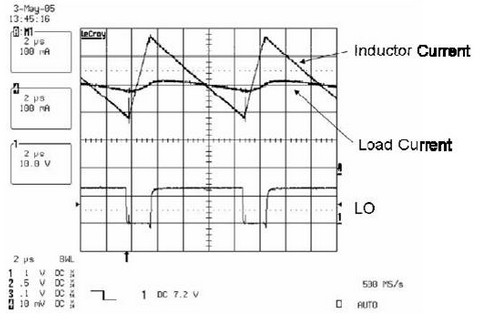下圖, 說(shuō)明了電感減小時(shí),在輸出電壓的變化范圍內(nèi),負(fù)載電流的波動(dòng)明顯增大。
