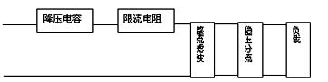 電路由降壓電容,限流,整流濾波和穩壓分流等電路組成。