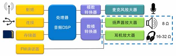 近年來(lái),智能手機(jī)集成的功能越來(lái)越多,但在基本的音頻放大應(yīng)用方面,在繼續(xù)優(yōu)化性能表現(xiàn)及用戶音頻體驗(yàn)方面仍有繼續(xù)提升的空間。原因是智能手機(jī)存在著特殊的音頻要求,例如:智能手機(jī)存在基帶/應(yīng)用處理器、調(diào)頻(FM)廣播、藍(lán)牙(耳機(jī))等多種音頻輸入源;編解碼器(CODEC)可以集成在模擬基帶中,也可獨(dú)立存在;多數(shù)情況下最少是揚(yáng)聲器放大器保持單獨(dú)存在(不集成),從而提供足夠輸出功率;耳機(jī)放大器外置,配合高保真(Hi-Fi)音樂(lè)播放。