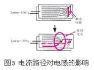如果連接線路和器件構成一個“回路”,即如圖3上半部分所示回路。換流回路上疊加的各感應電壓將會和直流母線電壓一起加在功率器件上,產生關斷電壓尖峰。尖峰過高可能造成器件過壓擊穿、增大開關損耗、加劇共模干擾,甚至帶來局部放電的危險。因此,在母線排結構設計中,應該盡量避免回路或者保持電流回路交叉。