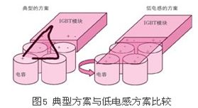 (2)疊層母線的布局中應注意電流路徑、電容端子布局等問題,可以有效的減少雜散電感,提高系統的抑制過電壓能力。