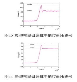 本節主要通過實驗進行典型布局下的母線排igbt過電壓波形與采用優化后布局的比較,如圖9所示。實驗使用80kva/400v變流器系統。圖10和圖11為實驗得到的igbt過電壓波形,其中圖11為采用典型布局的h橋母線排中測得的igbt過電壓波形,圖11為采用優化后布局的母線排中測得的igbt過電壓波形。由圖中可以看出新型母線排布局有良好的抑制過電壓效果。