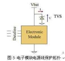 車(chē)載模塊的電源線保護(hù)是在汽車(chē)環(huán)境中需要關(guān)注的另一個(gè)問(wèn)題,這個(gè)問(wèn)題涉及ISO7637-2標(biāo)準(zhǔn)。例如,為滿(mǎn)足ISO7637-2標(biāo)準(zhǔn),特別是圖1中的1、2、3a和3b的脈沖要求,只使用一個(gè)瞬變電壓抑制器(TVS)即可有效保護(hù)車(chē)載模塊。