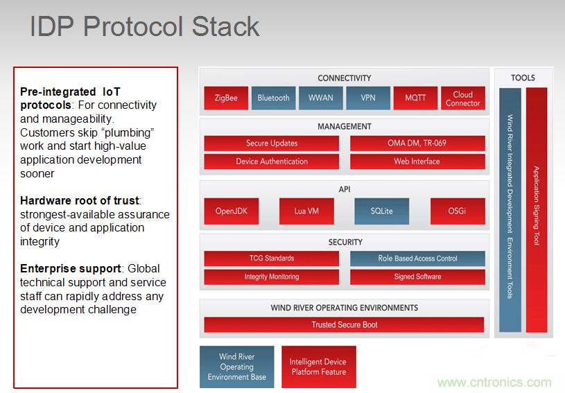 當(dāng)下物聯(lián)網(wǎng)面臨了三大挑戰(zhàn):連接、安全以及管理(數(shù)據(jù)的管理與分析),此外還存在新舊設(shè)備交替的過(guò)渡期,而Gateway是讓傳統(tǒng)設(shè)備實(shí)現(xiàn)聯(lián)網(wǎng)的最佳方式(如電表),蘇建豪如是說(shuō)。風(fēng)河在Gateway中提供了IDP,是一個(gè)物聯(lián)網(wǎng)平臺(tái),廠商可以在上面自己做開發(fā),而不需要再下功夫去考慮連接、安全等問(wèn)題,有效節(jié)省開發(fā)時(shí)間。