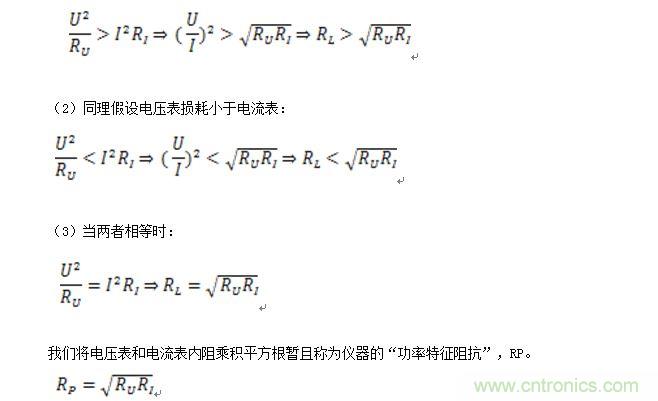 (2) 電流表外接時,電流表讀數為負載電流和電壓表電流之和,電壓表讀數即為負載電壓,因此儀器的測量結果中包含了電壓表的損耗功率PU。