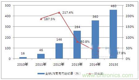 圖表1: 2010-2015年全球商用LTE網絡部署數量