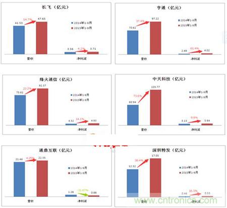 圖表6:2015年前三季度國內六大上市光纖光纜企業市場表現