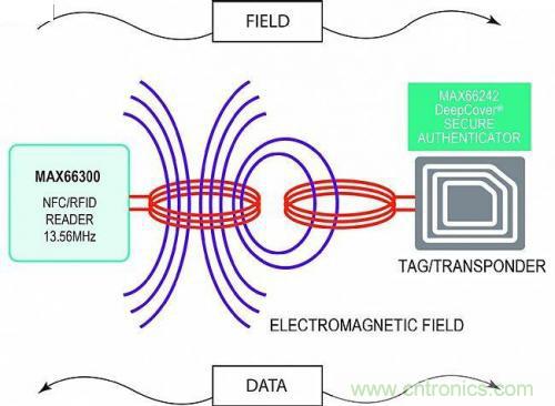 為涵蓋較寬的應用,RFID和NFC在本文的隨后討論中可互換使用。我們將簡要介紹NFC/RFID技術,給出常見的電路模塊,OEM可用來在便攜式電子產品中實現新型非接觸式NFC/RFID功能。示例電路基于DeepCover MAX66242雙接口安全無源標簽。利用給出的電路,很容易將NFC/RFID短距離無線技術增加到嵌入式電子平臺。我們將結合幾種實際使用情況展開討論。
