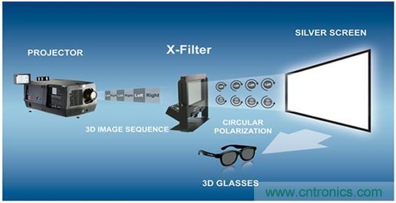 偏光式3D的基本原理其實與紅藍3D差不多,只不過在技術(shù)上相對成熟,采用兩個不同偏振方向的偏振片作為眼鏡,這樣垂直偏振的左眼將接受不到水平偏振的光,同樣水平偏振的右眼也接受不到垂直偏振的光。這樣我們在投射圖像的時候只需要將不同角度的圖像信息以不同偏振態(tài)的光發(fā)射出來,我們的兩個眼睛就會分別看到不同角度的信息,形成立體視覺。
