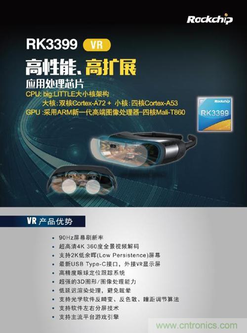據(jù)了解,目前瑞芯微Rockchip旗下主流芯片RK3288,應(yīng)用于VR產(chǎn)品,已經(jīng)具備其曝光的所有技術(shù)優(yōu)勢(shì)。已在VR產(chǎn)業(yè)鏈頗具建樹(shù),在2016年的CES展及本次香港展,多家品牌終端廠商采用了該入門(mén)級(jí)VR方案并進(jìn)行了展示。而最新發(fā)布的RK3399處理器,更定于中高端VR產(chǎn)品線,在硬件配置上提升巨大。