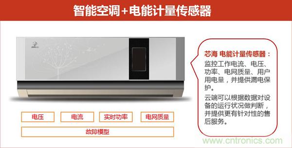 “比如智能空調”,王偉表示,“由芯海科技推出的電能計量傳感器,不僅可以監測用電量,幫助用戶實現家庭能源管理,還可以實時監測設備的電壓、電流、功率及區域電網質量,搭配我們與客戶共同研發的故障模型,從而完成對空調故障、制冷、漏水、固件損壞的預判,針對性為用戶提供售后服務。”