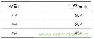 設置線圈不同半徑大小,見表3。
