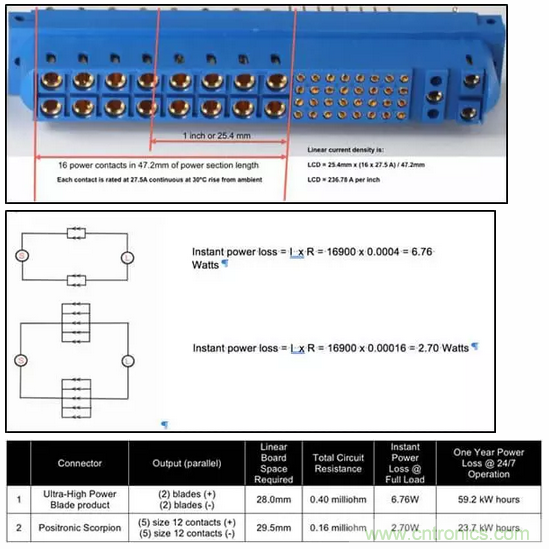 與安費諾的PwrBladeULTRA®連接器系統相比,Positronic的Scorpion SP系列連接器是一種機械接觸式電源連接器,單位效率從1,560W提高0.26%。在連續一年,每周7天,每天24小時運行的情況下,Scorpion連接器可節省35.5度電,相當于節省了3美元以上。因此,從運營的第三年開始,僅節省能源成本就會超過Scorpion連接器的全部成本。