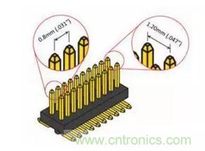 請注意,在這個例子中,同一排相鄰引腳間距的測量和兩排之間引腳間距是不一樣的。同一排相鄰引腳間距的測量和兩排之間引腳間距可以相同,所以連接器一定要仔細檢查這兩個參數。