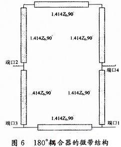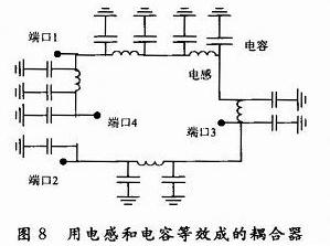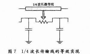 這是一個180°定向耦合器,也稱為rat-race網(wǎng)絡(luò),如圖5所示。物理上可以通過微帶實(shí)現(xiàn),如圖6所示。然而對于第1部分提出的710 MHz天線,由于波長太長,這樣的耦合器在移動設(shè)備上無法實(shí)現(xiàn)。為了實(shí)現(xiàn)去耦合,可以用貼片電感和電容做出成等效傳輸線,從而用電感和電容做成一個耦合網(wǎng)絡(luò),這就可以顯著降低耦合器占用的體積。如圖7所示,一個等效1/4波長傳輸線可以用兩個電容和一個電感來等效代替。電容和電感的計算公式為: