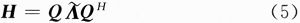 式中:A=diag{λ1,λ2},而Q是幺正的(即QQH=I)。根據(jù)厄米特矩陣的性質(zhì),兩個正交值λ1和λ2都是實(shí)數(shù),并且小于等于1。將式(5)代入式(4)得: