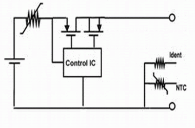 鋰離子電池盒一般包括有源過壓及過電流檢測安全電路(IC和MOEFET),以及串聯聚合物PTC組件,如圖5所示。若PPTC組件有低溫操作特性,在電池溫持續升高的情況下,它將以切斷充電或放電來提供過溫度保護。雖然半導體電路很可靠,在某些情況下故障也可能發生,例如靜電過度放電,高溫或在短路情況下的震動等。