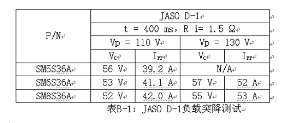 至少,兩個串聯的SM5S22A箝位負載突降電壓輸入為174 V,線路電阻為2 Ω,而SM6S22A或SM8S22A具有更低的箝位電壓和更低的線路電阻。