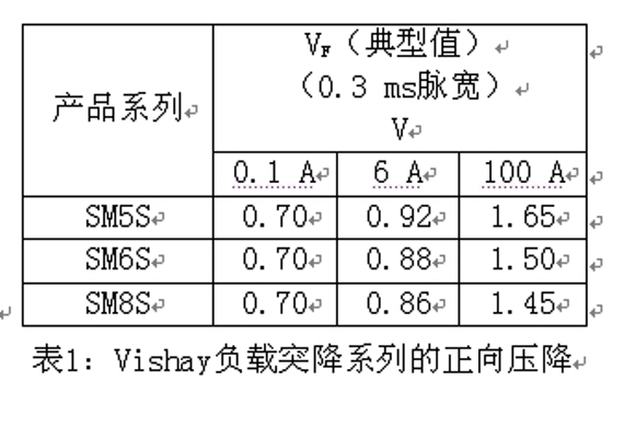Vishay負載突降系列可以滿足上述所有條件,第一個條件是整流器的基本功能,第二個條件是通過表1滿足的。Vishay負載突降系列的正向壓降在100 A電流條件下低于1.7 V。第三個條件取決于保險絲類型和額定值。