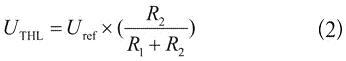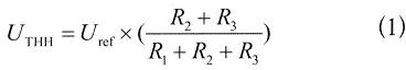 式(1)和式(2)是理論上的公式,實際上,為了將上述的滯回原理應用于實際的電池系統,還要考慮一個參考電壓的問題。參考電壓Uref是不能變的,否則上下電壓門限就會發生變化。而且參考電壓是由電池電壓供電產生的,它必須比電池電壓低的多,而且功耗極小。