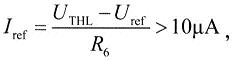 但由于分流穩壓器還要分出一部分電流給其它電阻網絡用,留出2倍的裕量,所以實際的應保證Iref>20μA,這樣可求出R6=175kΩ,取R6=125kΩ。