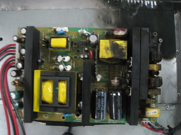 實際上很多公司的LCD平板電視機外接信號線接口的地線,都不是直接接到電視外殼的金屬板上,如高頻頭、AV端口、RGB接口等,都是先經過接頭與PCB板的銅皮連接,然后再用引線或螺釘使PCB板的銅皮與電視外殼進行電器接觸。因此,所有與PCB板銅皮連接的連線以及接觸點都有可能因接觸不良或電流密度過大造成起火,圖4這種起火情況只是眾多起火現象中的之一。