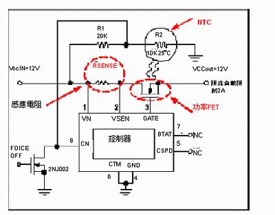 這種方法看起來很簡單,但它在采用NTC熱敏電阻來提供過熱保護時具有幾個固有的問題。其中一個問題就是,在NTC熱敏電阻上出現足夠高溫度(85℃)而需要降低控制器ON引腳的電壓到臨界值(0.6V)以下前,功率FET結的最大溫度很容易被超過。這是因為NTC熱敏電阻上的溫度完全取決于功率FET外殼溫度(TC)所傳遞的熱量,而FET的結溫不僅取決于外殼溫度和功耗,還取決于系統溫度的升高,這由周圍溫度、銅線面積、氣流和其它許多因素決定。