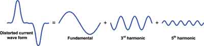 當60Hz行掃描頻率的第三諧波和第五諧波成為諧波的主要組成部分時,所有頻率分量(包括60Hz基頻)的矢量總和就可以達到峰值,該峰值超過基本相位電流振幅的100%以上。